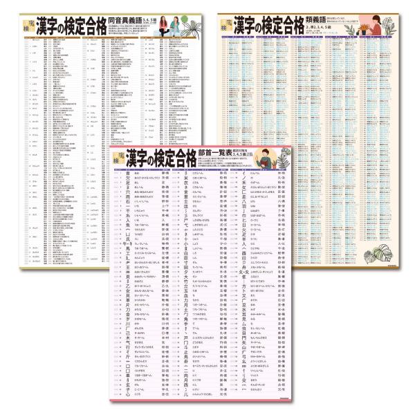 proceedx 3231 学習ポスター漢字の検定合格,同音異義語,類義語,部首一覧表 A2サイズお値打ち3点セット日本製