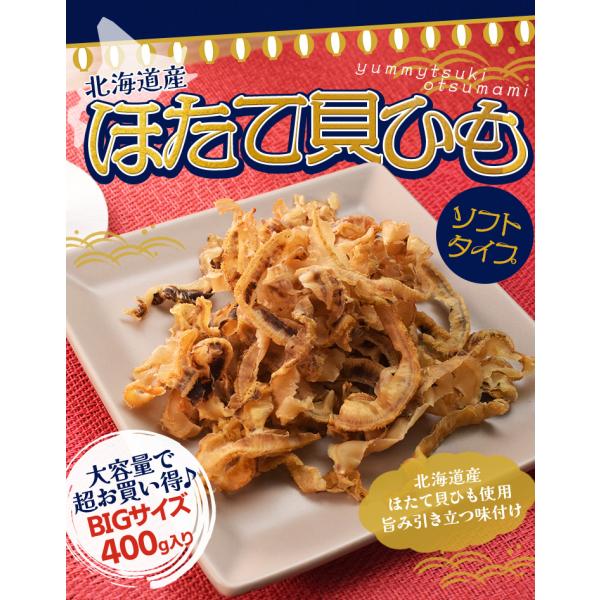 ほたて貝ひも 焼き おつまみ 北海道産 国産 ソフトタイプ 400g 大容量 お得サイズ 帆立 貝紐 珍味 肴 チャック付袋入