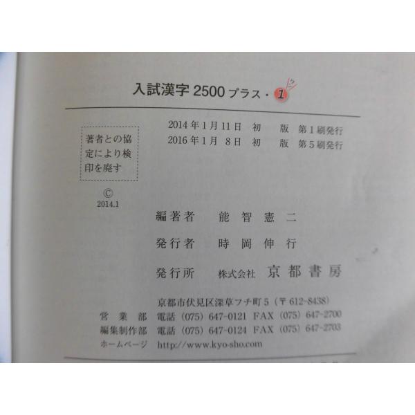 中古 大学 入試漢字2500 プラス1 発行2016年1月8日【0005561】