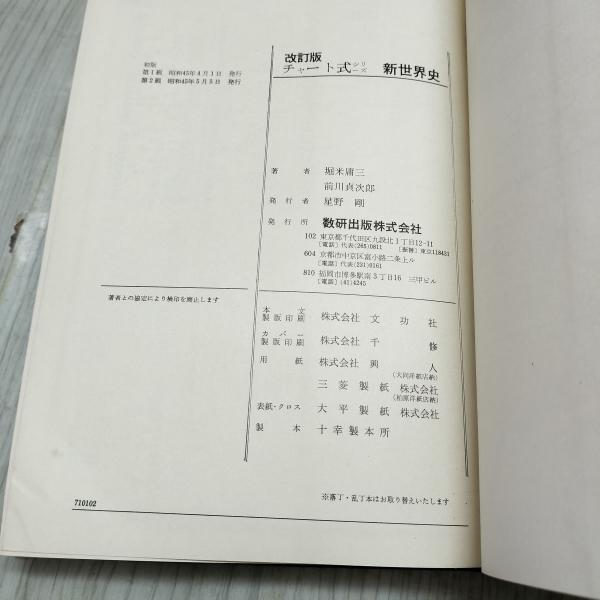 [中古] 改訂版チャート式シリーズ 新世界史 数研出版 昭和49年 1974年 臭いあり 230209