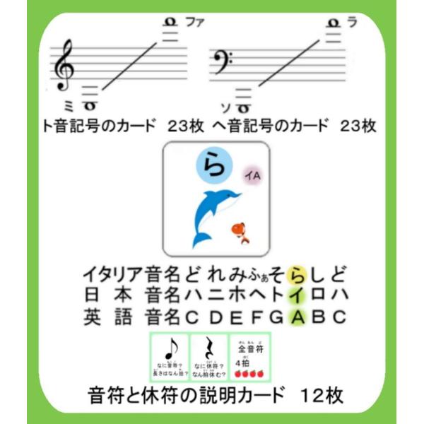 音符カード ト音・ヘ音記号(音符と休符の説明付)正方形版