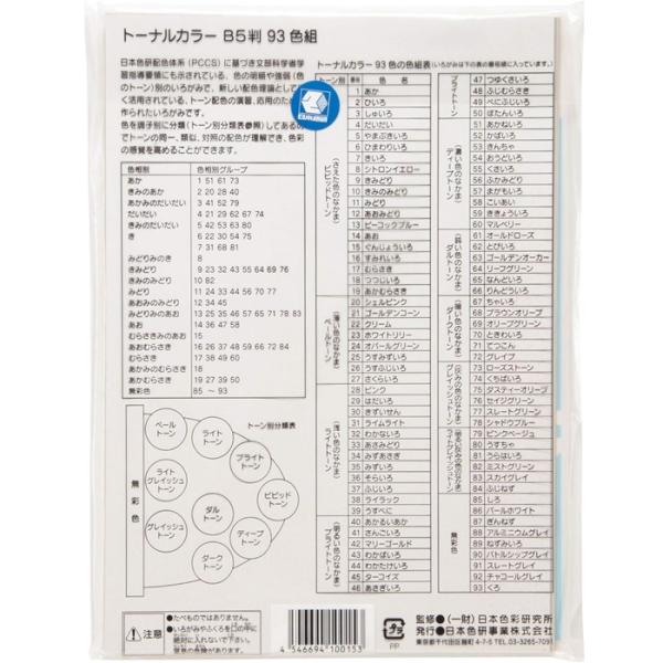 トーナルカラー(いろがみ)93色 B5 トーナルカラー93色 トーン別 いろがみ 印刷いろがみ 色彩教育 色彩学 色彩構成 配色計画 調和のとれた配色 PCCS 日本色研