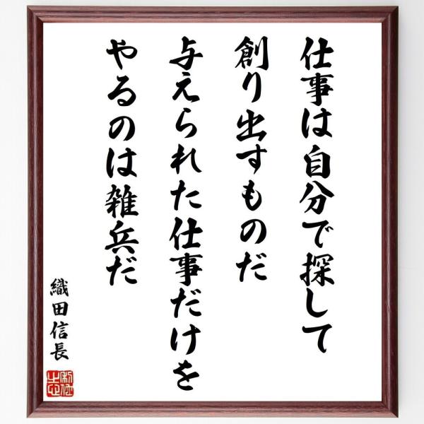 織田信長の名言「仕事は自分で探して、創り出すものだ、与えられた仕事だけをやるのは雑兵だ」手書き書道色紙額/受注後の毛筆直筆