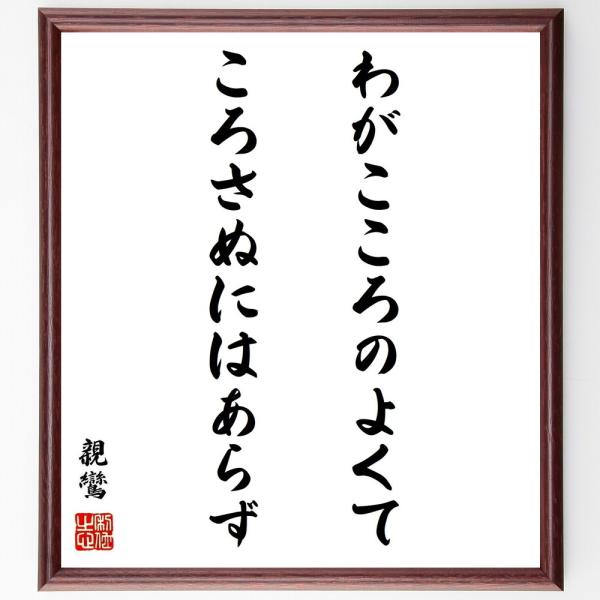 親鸞の名言「わがこころのよくてころさぬにはあらず」手書き書道色紙額/受注後の毛筆直筆