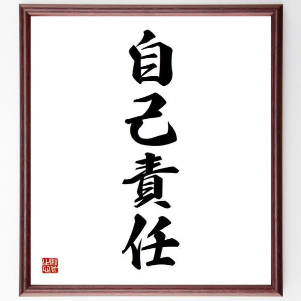 四字熟語「自己責任」手書き書道色紙額/受注後の毛筆直筆