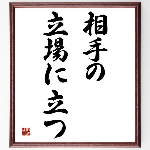 名言「相手の立場に立つ」手書き書道色紙額/受注後の毛筆直筆