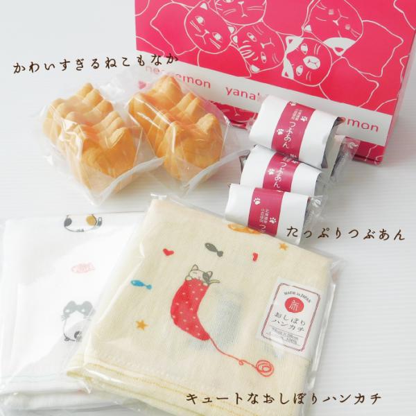 母の日 猫雑貨 送料無料 猫もなかとハンカチセット ネコ 猫 ねこ 谷中堂 コットン100% ガーゼハンカチ ギフト 30代 40代 50代 60代 国産もなか