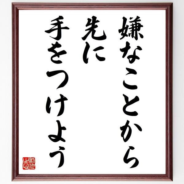 名言「嫌なことから、先に手をつけよう」手書き書道色紙額/受注後の毛筆直筆