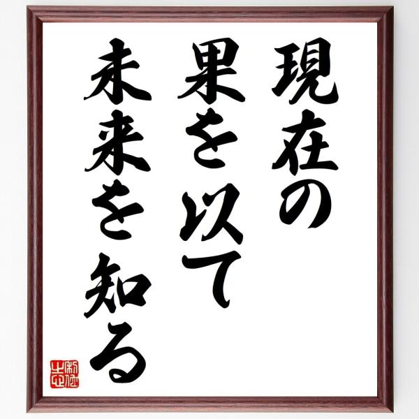 名言「現在の果を以て未来を知る」手書き書道色紙額/受注後の毛筆直筆