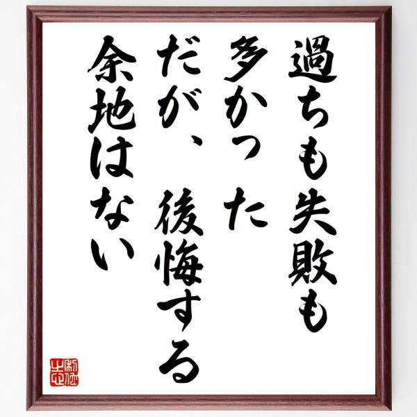 ヘンリック・イプセンの名言「過ちも失敗も多かった、だが、後悔する余地はない」手書き書道色紙額/受注後の毛筆直筆