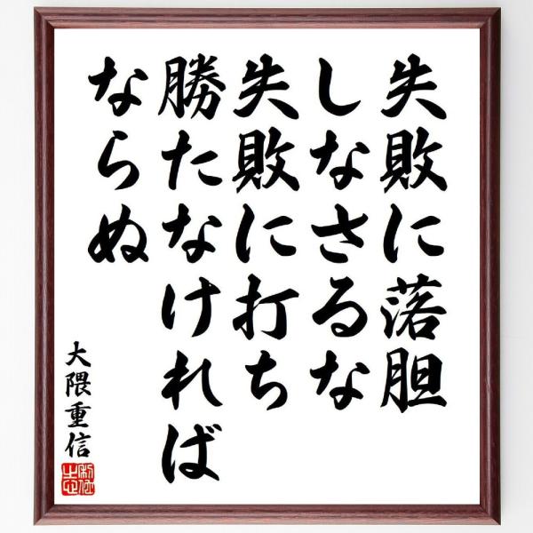 大隈重信の名言「失敗に落胆しなさるな、失敗に打ち勝たなければならぬ」手書き書道色紙額/受注後の毛筆直筆