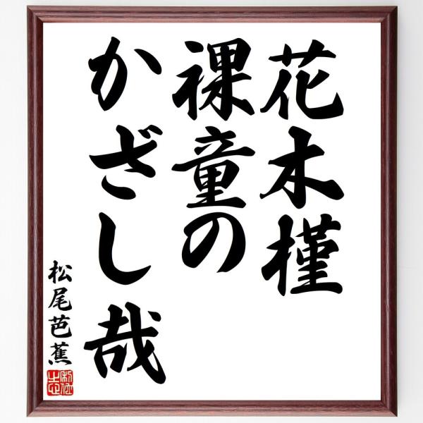 松尾芭蕉の短歌・俳句「花木槿、裸童の、かざし哉」手書き書道色紙額/受注後の毛筆直筆