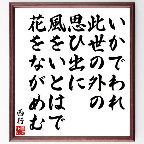 西行の短歌・俳句「いかでわれ、此世の外の、思ひ出に、風をいとはで、花をながめむ」手書き書道色紙額/受注後の毛筆直筆