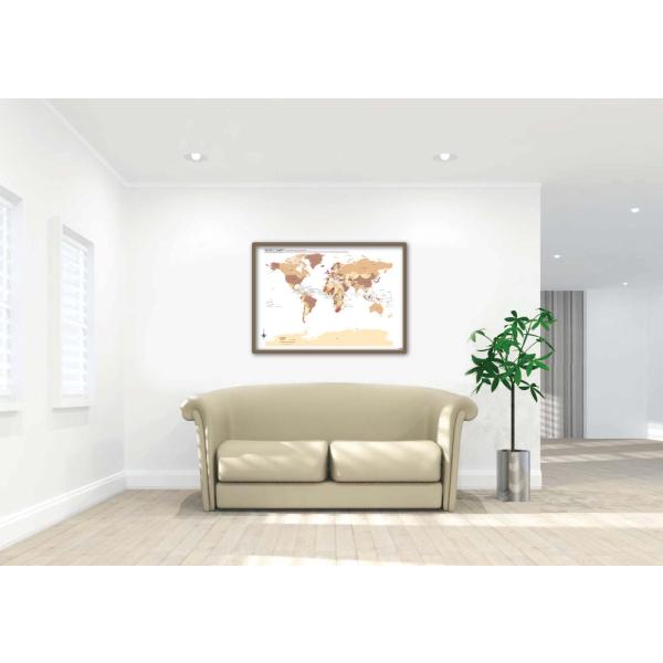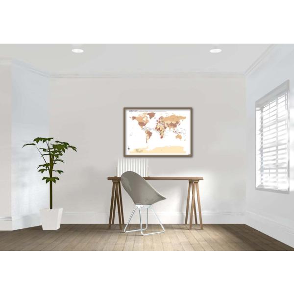 PROCEEDX美しい世界地図 パステルカラーベージュ3 学習ポスターミニマルマップ フレーム付きA2サイズ日本1264