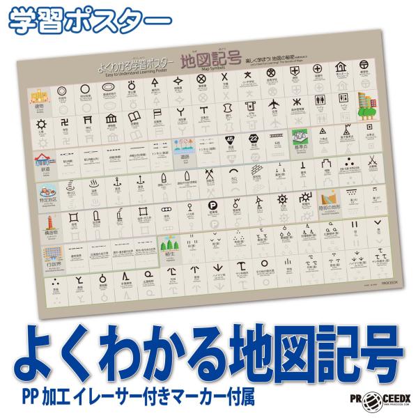 PROCEEDXよくわかる地図記号 学習ポスターPP加工 A2サイズ イレーサー付きマーカー付属 折り目なし送付 日本製 [pro-1401]