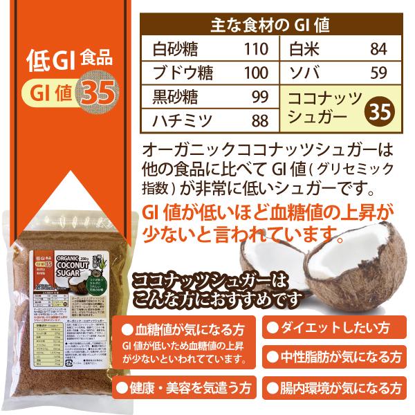 ORGANIC COCONUT SUGAR ココナッツシュガー 250g 低GI食品 お得な2個セット 送料無料 国内充填