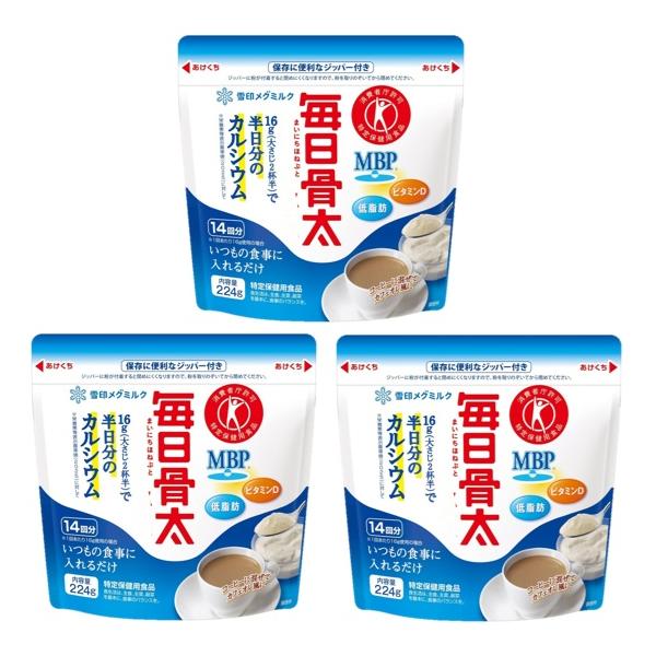 毎日骨太 スキム 224g×3袋 雪印メグミルク トクホ MVP 特定保健用食品 低脂肪 スキムミルク カルシウム ジッパー付き