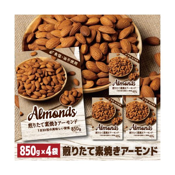 おいしくなってリニューアル 小林商事 ナッツ アーモンド 素焼きアーモンド 850g 4袋 食塩不使用 大容量 無塩 ロースト ノンオイル 健康 賞味期限27年1月 八幡