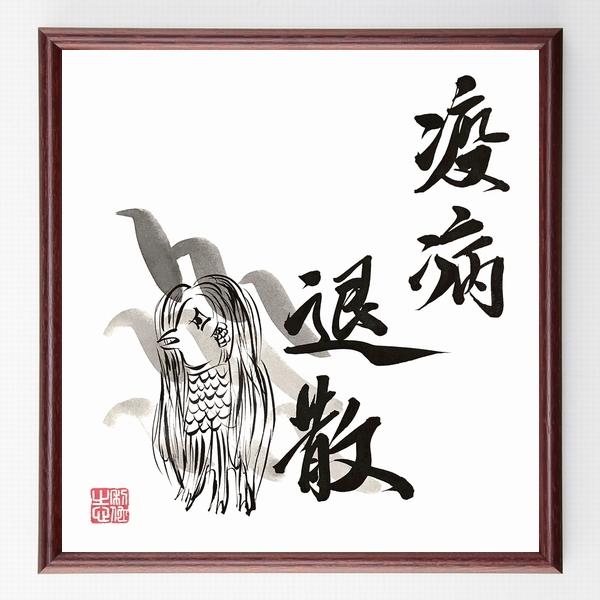 四字熟語「疫病退散」手書き書道色紙額/毛筆直筆済み