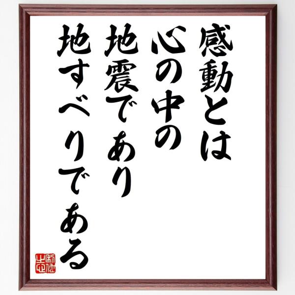 名言「感動とは、心の中の地震であり、地すべりである」手書き書道色紙額/受注後の毛筆直筆