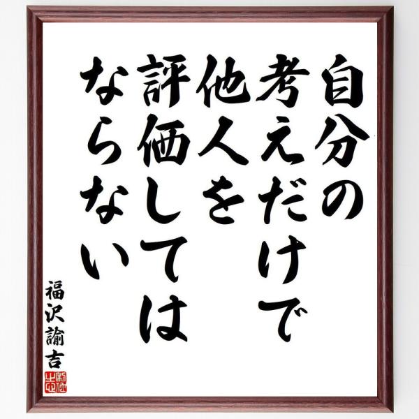 福沢諭吉の名言「自分の考えだけで、他人を評価してはならない」手書き書道色紙額/受注後の毛筆直筆