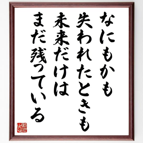 名言「なにもかも失われたときも、未来だけはまだ残っている」手書き書道色紙額/受注後の毛筆直筆