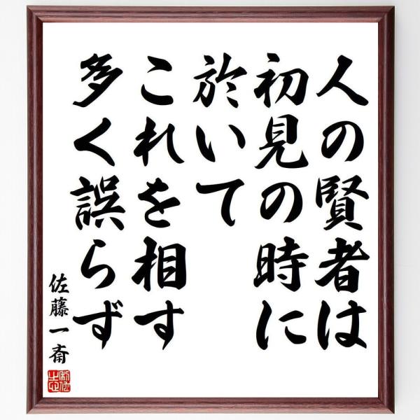 佐藤一斎の名言「人の賢者は初見の時に於いてこれを相す、多く誤らず」手書き書道色紙額/受注後の毛筆直筆