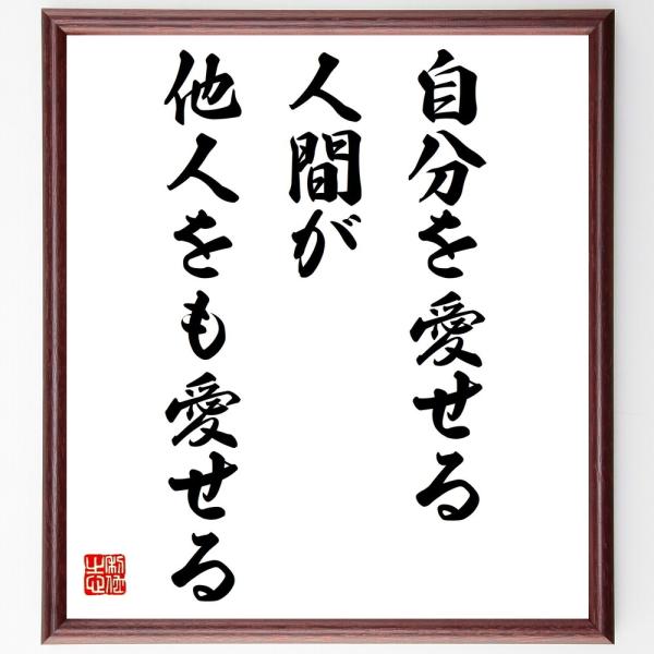 名言「自分を愛せる人間が他人をも愛せる」手書き書道色紙額/受注後の毛筆直筆