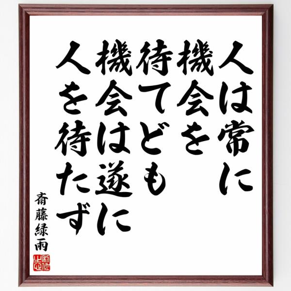 斎藤緑雨の名言「人は常に機会を待てども、機会は遂に人を待たず」手書き書道色紙額/受注後の毛筆直筆