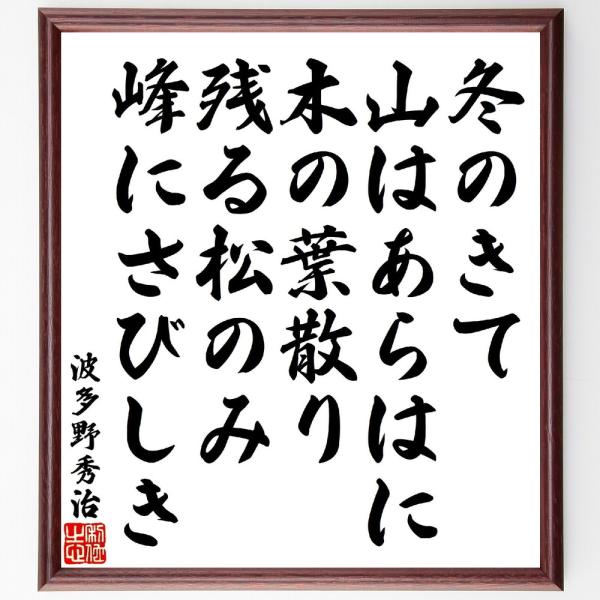 波多野秀治の短歌・俳句「冬のきて山はあらはに木の葉散り、残る松のみ峰にさびしき」手書き書道色紙額/受注後の毛筆直筆