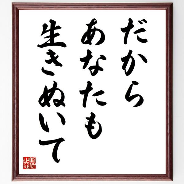 名言「だから、あなたも生きぬいて」手書き書道色紙額/受注後の毛筆直筆