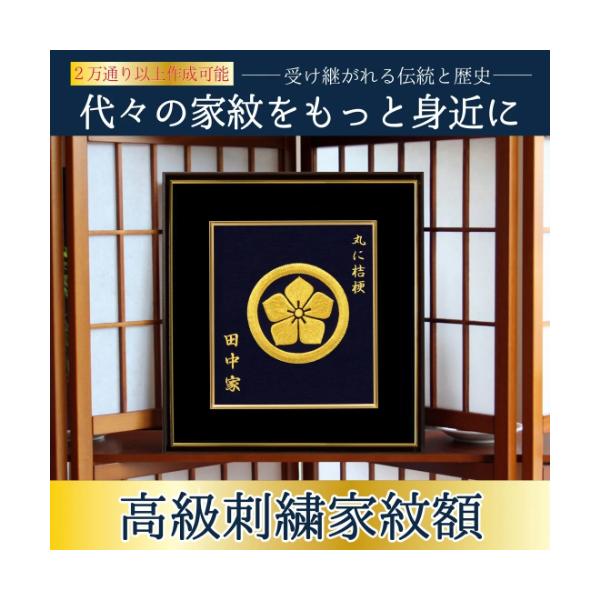 高級刺繍家紋額 1 丸に違い鷹ノ羽 日本 伝統 家紋 身近 家族 繁栄 健康 末長く願う事 冠婚葬祭 歴史 子孫 プレゼント インテリア 新築御祝 還暦御祝 長寿 Eclea
