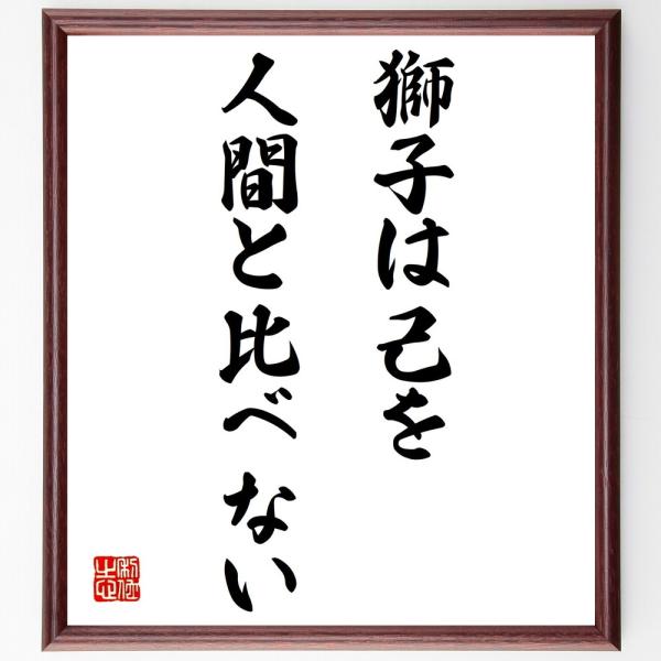 名言「獅子は己を人間と比べない」手書き書道色紙額/受注後の毛筆直筆