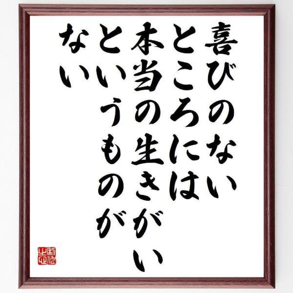 名言「喜びのないところには、本当の生きがいというものがない」手書き書道色紙額/受注後の毛筆直筆