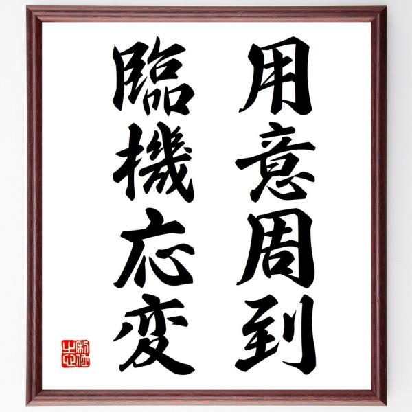 名言「用意周到、臨機応変」手書き書道色紙額/受注後の毛筆直筆