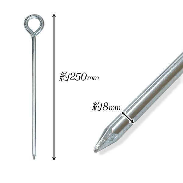 丸形 ロープ止め 20本 ペグ 丸型 ロープ釘 固定金具 トラロープ 杭 丸型強力 テントペグ 設営 全長250mm 25cm 直径8mm 農業用菜園用シート
