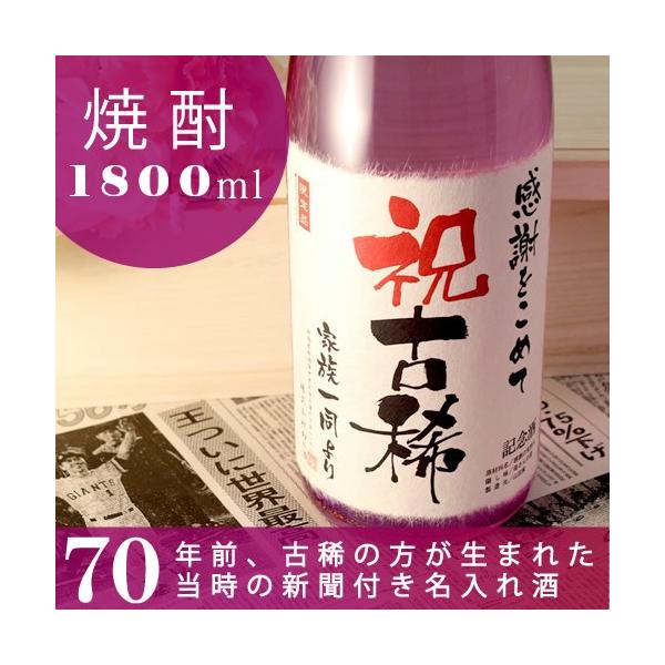 古希のお祝い 古希祝い 70歳 プレゼント 男性 女性 父 母 ギフト 記念日の新聞付き名入れ酒 本格焼酎 華乃菫 1800ml ソーシャルギフト