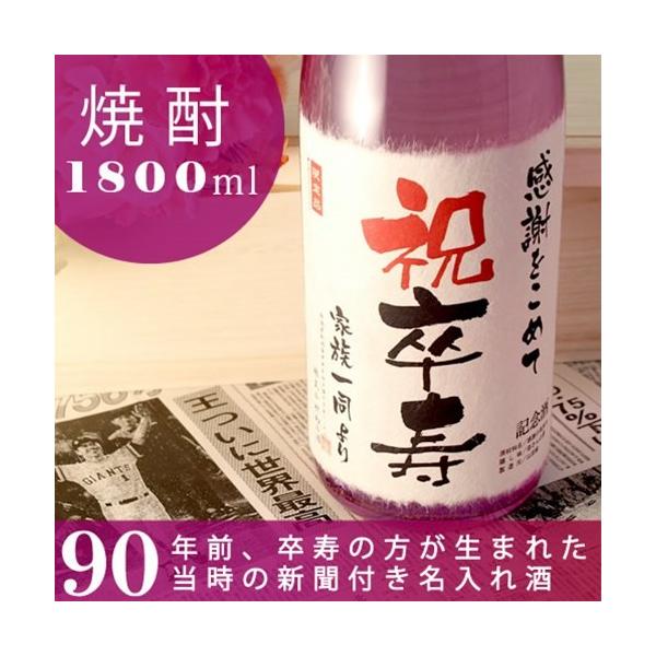 卒寿のお祝い 卒寿祝い 90歳 プレゼント 男性 女性 父 母 祖父 祖母 ギフト 記念日 記念日の新聞付き名入れ酒 本格焼酎 華乃菫 1800ml