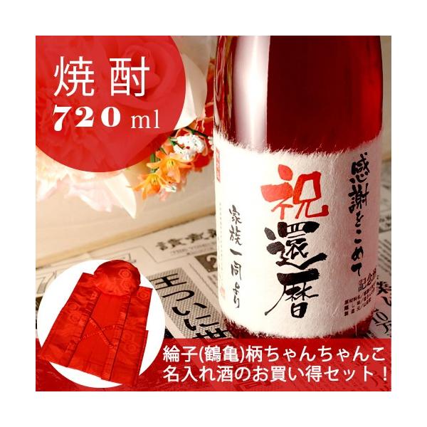 還暦のお祝い 60歳 プレゼント 記念日の新聞付き名入れ酒 本格焼酎 華乃小町 720ml+ちゃんちゃんこ 男性 女性 父 母 ソーシャルギフト