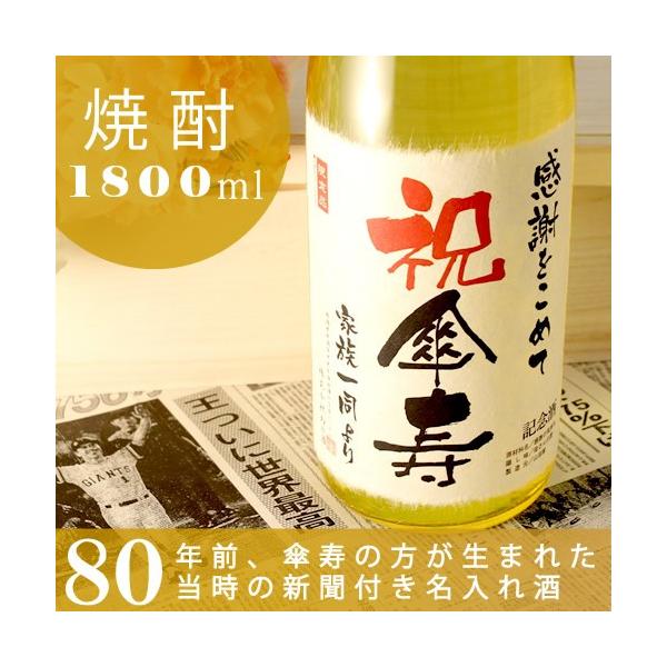 傘寿のお祝い 傘寿祝い 80歳 プレゼント 男性 女性 父 母 祖父 祖母 ギフト 記念品 記念日の新聞付き名入れ酒 本格焼酎 華乃萌黄 1800ml