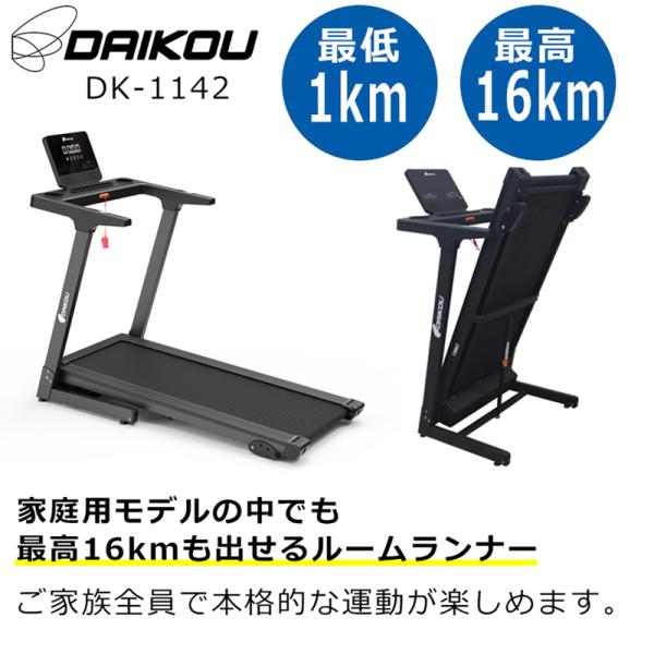 ルームランナー ランニングマシーン 家庭用 静か 電動 16km 折りたたみ 油圧シリンダー式 手動傾斜3段階 連続使用90分 DK-1142
