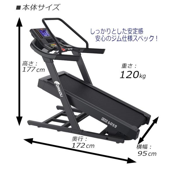 ルームランナー ランニングマシーン 準業務用 高傾斜 静か 電動 16km 電動傾斜37段階 最大傾斜20.5度 体重制限130kg 高地 DK-6059