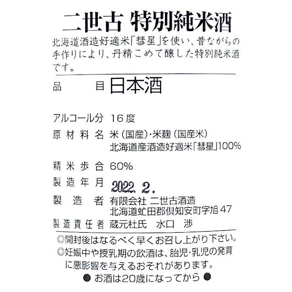 二世古 特別純米 彗星 720ml 日本酒 清酒 四合瓶 北海道 にせこ ニセコ 青ラベル