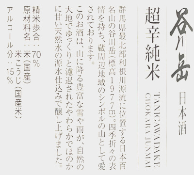 谷川岳 超辛 純米酒 1.8L 日本酒 清酒 1800ml 一升瓶 群馬 永井酒造 水芭蕉 たにがわだけ