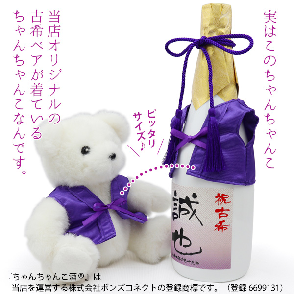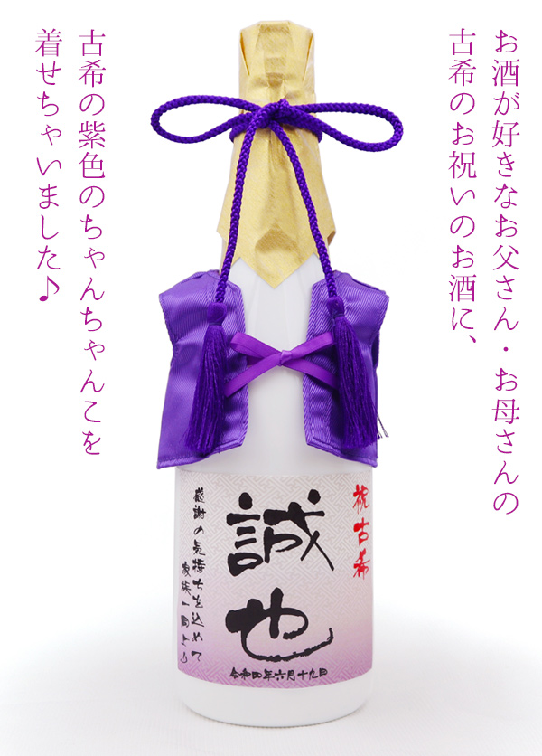 古希祝い 男性 プレゼント 紫のちゃんちゃんこを着た 名入れラベル酒 純米大吟醸 白ボトル ちゃんちゃんこ酒 古希のお祝い 父 贈り物 お酒 ギフト