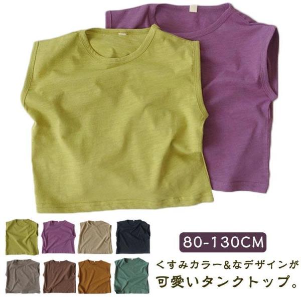 タンクトップ キッズ ベビー服 子供服 薄地 シンプル ノースリーブ カットソー 男の子 女の子 ユニセックス 袖なしTシャツ ナチュラル 保育園着