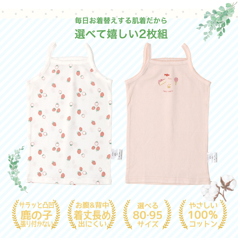 肌着 ベビーキッズ 2枚セット 鹿の子 凸凹編み キャミソール ランニング ノースリーブ アンダーウェア 子供 ( 80-95cm ) 80cm 90cm 95cm 下着 インナー