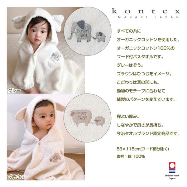出産祝い 男の子 女の子 ベビーバスローブ バスポンチョ フード付き 名入れ 今治 kontex オーガニック