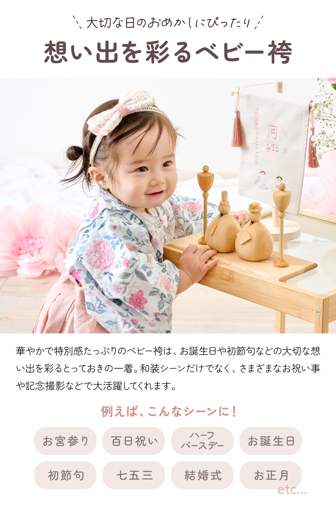袴 ベビー 2ピース お食い初め 七五三 女の子 100日祝い ひな祭り 男の子 くすみカラー 初節句 赤ちゃん ベビー袴 着物 お宮参り 結婚式 花柄 晴恋 regalo
