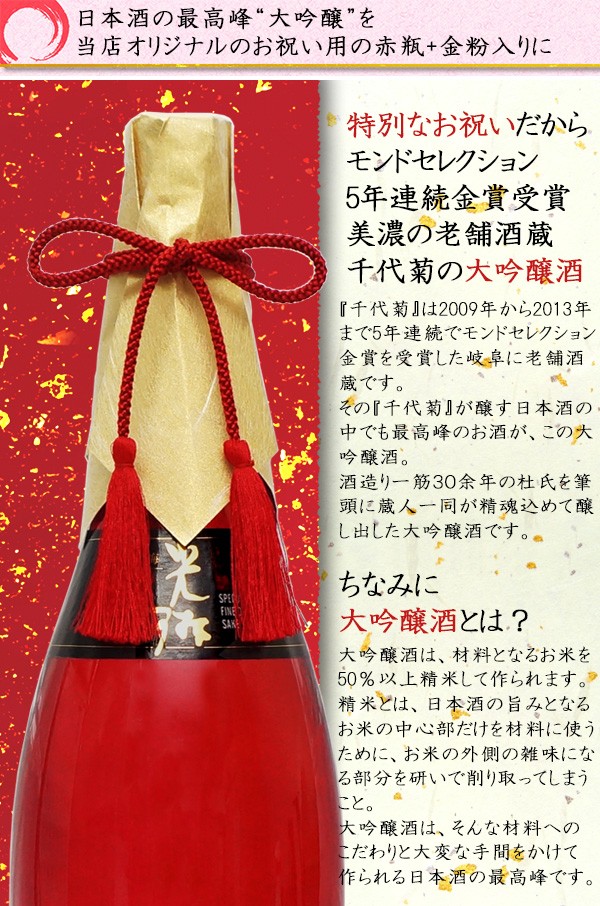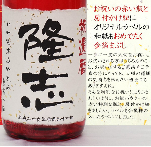 退職祝い 男性 日本酒 プレゼント モンドセレクション5年連続金賞の老舗蔵が造る 名入れラベル酒 大吟醸 祝い赤瓶 金箔入り 寿の水引付き 一升瓶 定年 退職 退官